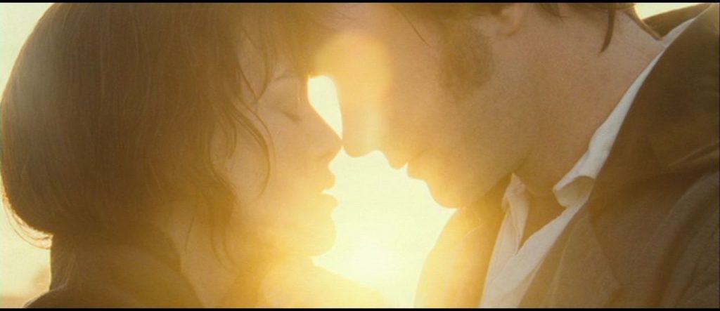 Então, o texto de Austen dá as caras, quando Darcy explica que caminhou durante a madrugada para explicar para ela a agressão que a tia dele cometeu no dia anterior. Tudo na linguagem da cena explicita o amor dele por ela. O visual, o sonoro, as palavras, e os atos. É um dos momentos literários que mais influenciaram um gênero narrativo, e é maravilhosamente retratado por Wrigh em filme.
